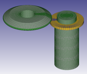 このサンプルは陰解法ソルバー剛塑性ALE法を用いた冷間ロータリー成形解析です。 ディスクの材料は、アルミ、寸法は直径70mm、厚さ5mmを定義します。 マンドレルとヘッドストックは、250rpmで回転し、軸方向の送り量が1mm/secです。 ALE機能を有効するために、DEF_ALE.DATを利用しています。体積の膨張を防ぐために、 AXIS.DATを利用します、ALE解析におけるデフォルトの収束条件を無視するとために、 DEF_ALEC.DATを利用します。