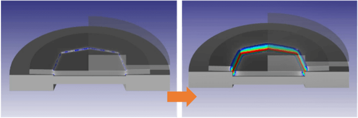 また、切削加工までの加工履歴(残留応力)を持ったまま、切削加工を行った後の形状変化を予測できるため、適切な切削加工パスで加工し、後工程で生じる可能性がある形状変化を事前に回避できます。